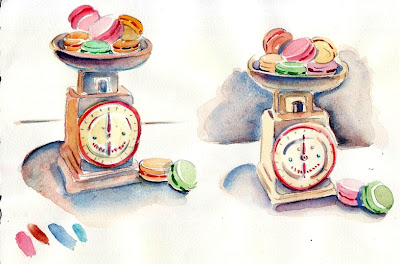The only other time I painted in a bathroom was in Paris iat Hotel la Louisiane. The great thing was I could run around the block for still life subjects like French tea cups, macarons and chocolate boxes.